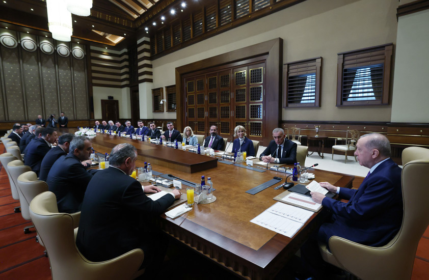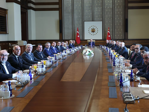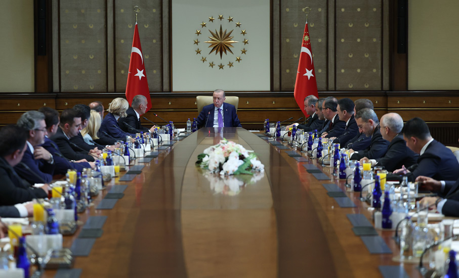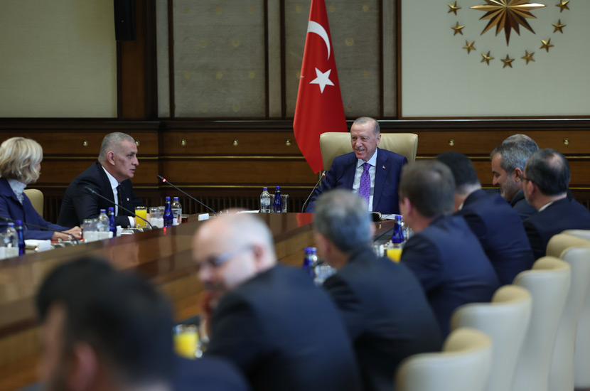 Cumhurbaşkanı Recep Tayyip Erdoğan, Türkiye Futbol Federasyonu (TFF) Başkanı İbrahim Ethem Hacıosmanoğlu ve yönetim kurulu üyelerini Cumhurbaşkanlığı Külliyesinde kabul etti.