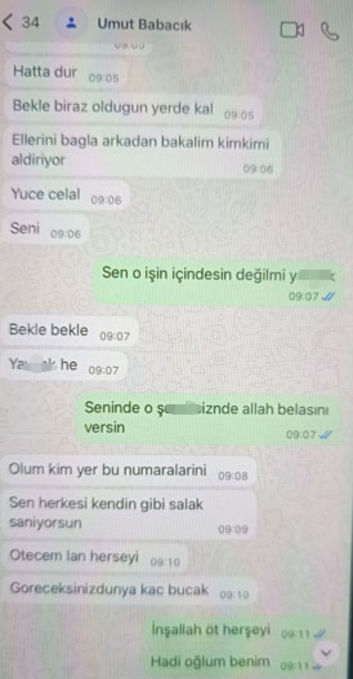 Yazışmalarda Celal Altaş’ın oğlu Umut Altaş’a yönelik, “Senin her şeyden haberin var ş*refsiz” ifadelerini kullandığı görüldü.