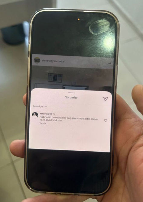 Saldırganın olaydan önce sosyal medya hesabı üzerinden “Bu okulda birkaç gün sonra saldırı olacak” şeklinde bir paylaşım yaptığı belirlendi.