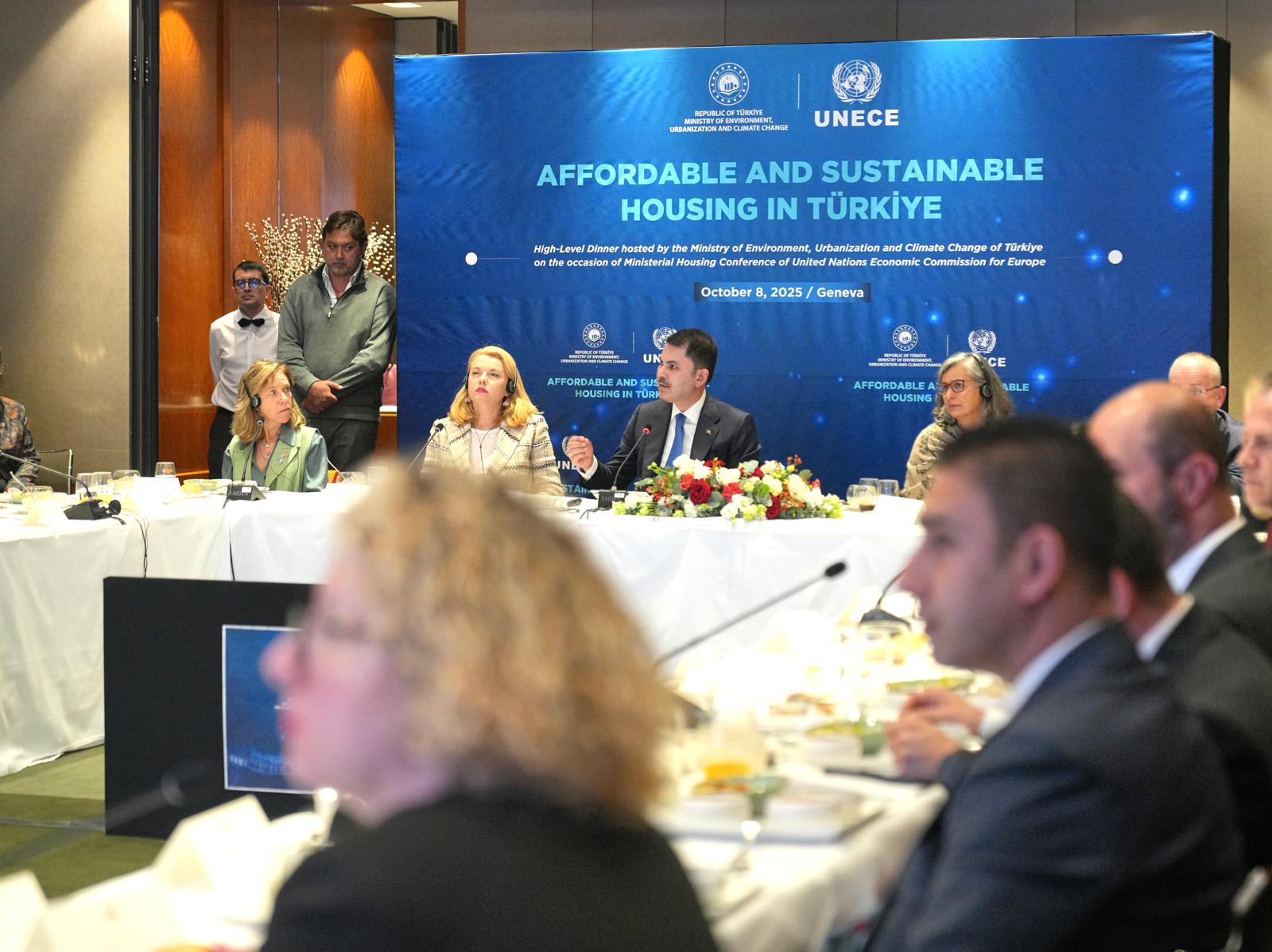 Çevre, Şehircilik ve İklim Değişikliği Bakanı Murat Kurum, Birleşmiş Milletler Avrupa Ekonomik Komisyonu’nun Kentsel Kalkınma, Konut ve Arazi Yönetimi Komitesi’nin 86’ncı Oturumu için gittiği Cenevre’de, Türkiye’nin inşa ve sürdürülebilir şehircilik alanındaki çalışmalarına ilişkin kapsamlı bir sunum yaptı. Farklı ülkelerin hükümet temsilcileri ile uluslararası kuruluşların yöneticilerinin katıldığı programda asrın felaketinin ardından deprem bölgesinde yürütülen çalışmaların yer aldığı görüntüler izletildi. Bakan Kurum, küresel ölçekli rakamlarla dünyadaki konut arzına yönelik gelişmeleri, Türkiye’nin hayata geçirdiği sosyal konut projelerini, kentsel dönüşüm çalışmalarını, deprem bölgesindeki 453 bin konutluk inşa seferberliğini, sürdürülebilir şehircilik çalışmalarını ve 500 bin sosyal konut projesine yönelik hazırlıklarını anlattı.